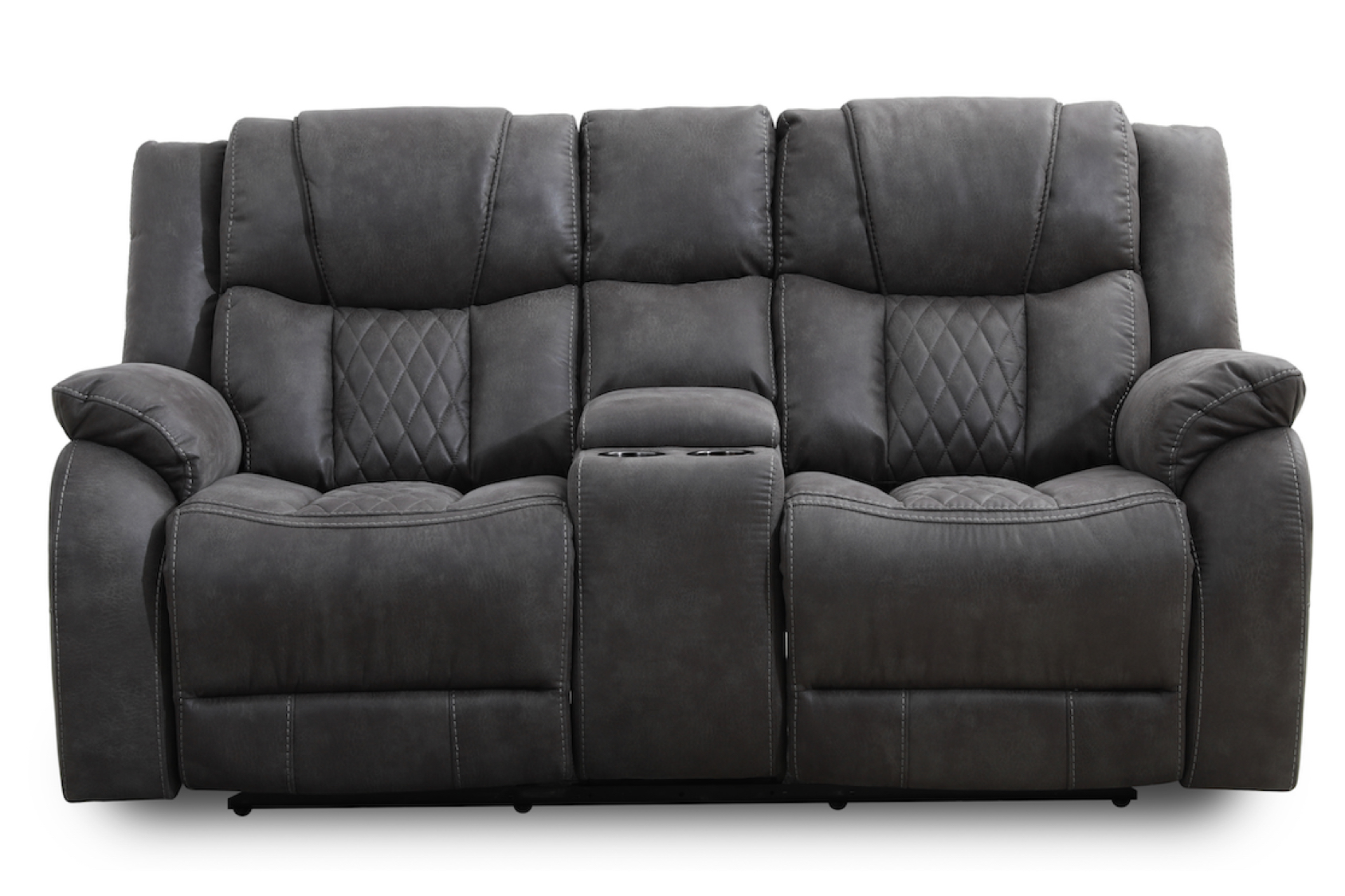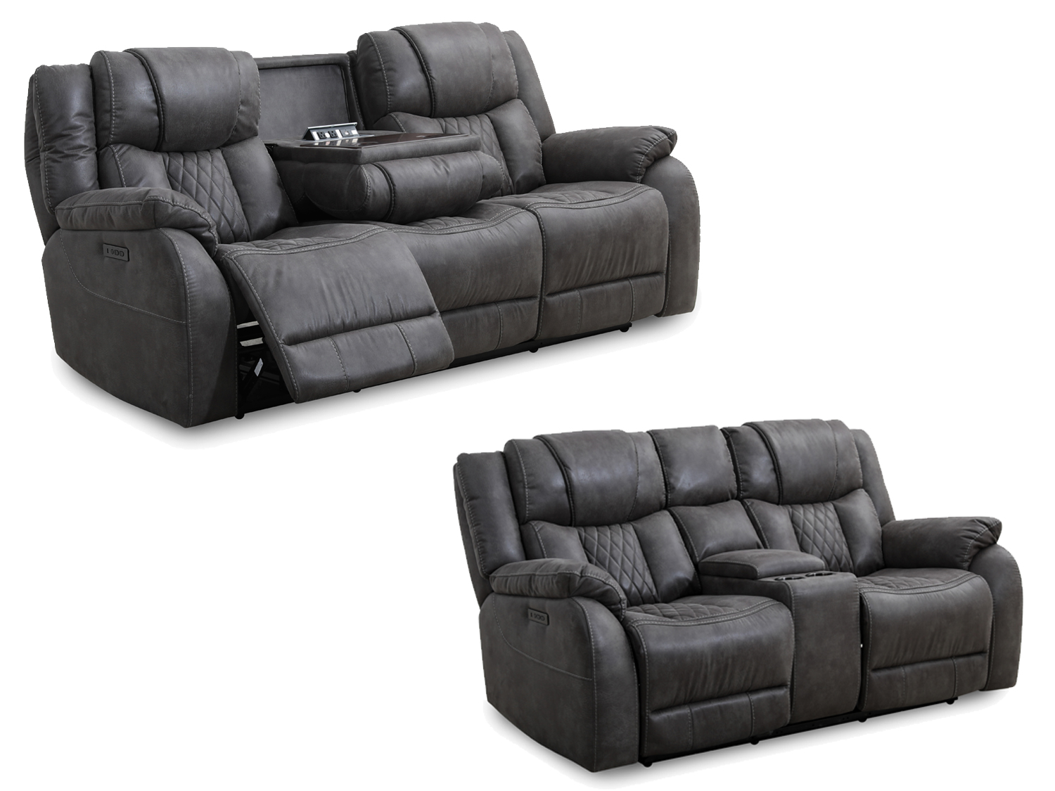 - - Sofa Features drop-down tray with cup holders and power outlets