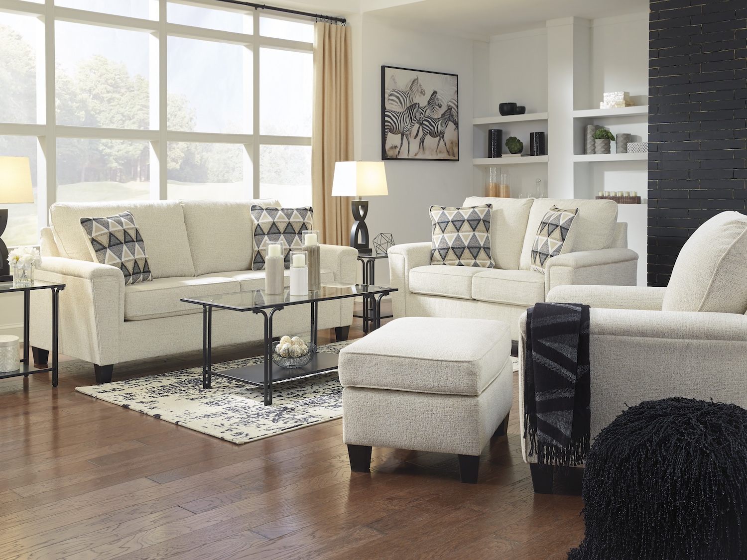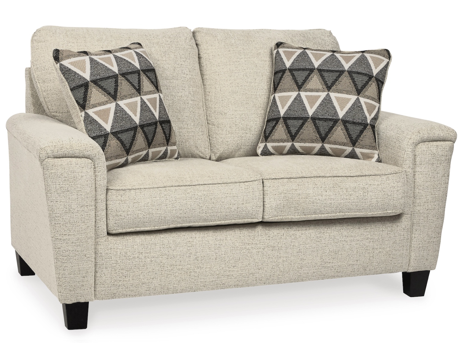 - If you’re looking to lighten the mood, you’re sure to find this space-conscious, budget-conscious sofa a breath of fresh air. Covered in a cream-tone chenille upholstery loaded with plush texture, this less-is-more contemporary sofa is dressed to impress with angled side profiling and track armrests wrapped with a layer of pillowy softness for that little something extra. Crisp and clean, the 2-over-2 cushion styling adds up to one sensational look.