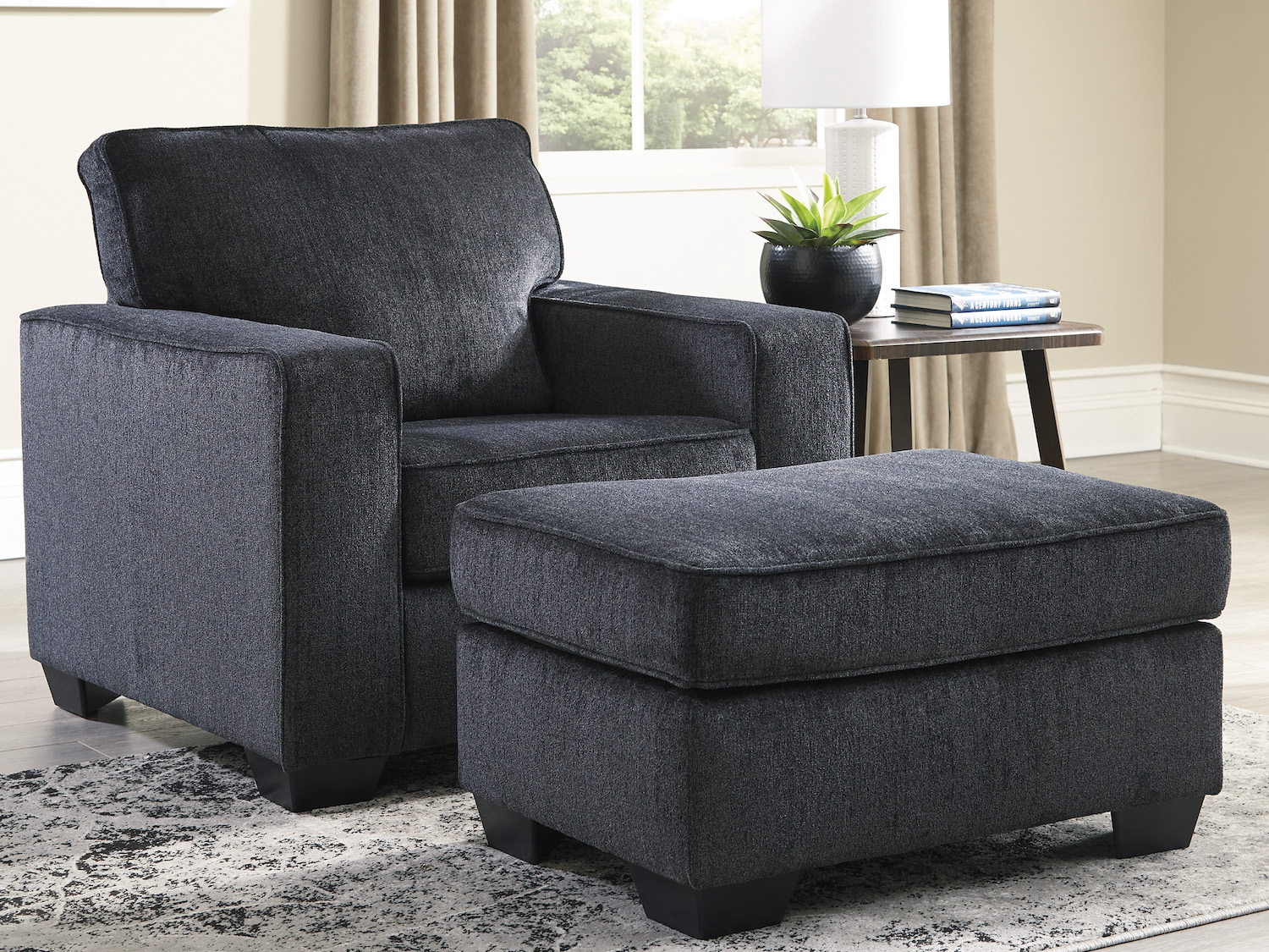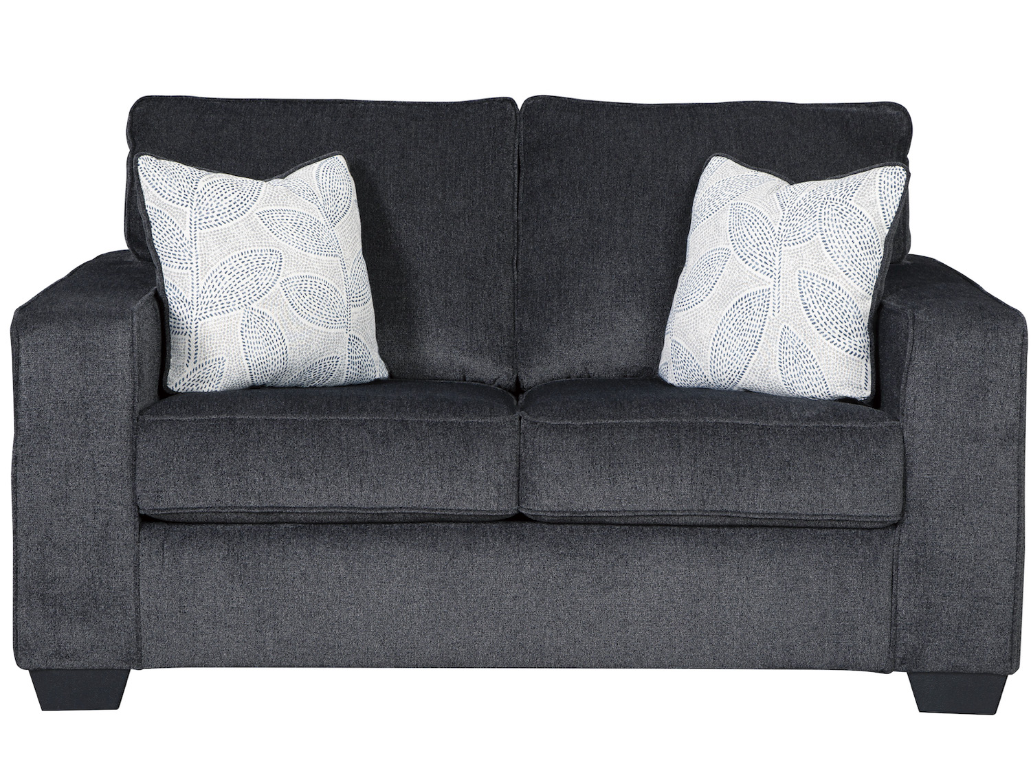 - If style is the question, then this sofa is the answer. Sporting clean lines and sleek track arms, the decidedly contemporary profile is enhanced with plump cushioning and a chenille-feel upholstery, so pleasing to the touch. Sure to play well with so many color schemes, this sofa in slate gray includes a pair of understated floral pattern pillows for fashionably fresh appeal.