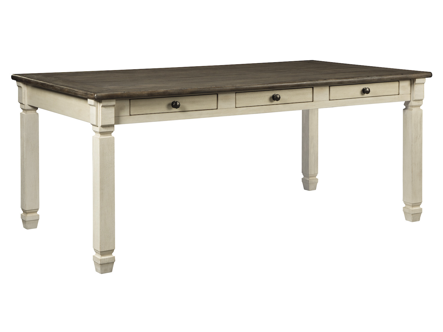 - Ashley Bolanburg Dining Table With Storage. The beauty of this dining table is something to savor. A two-tone textural finish gives this rectangular dining table with a plank-effect top a double helping of charm. Six drawers built into the table apron allow you to keep placemats, napkins, and utensils right on hand.