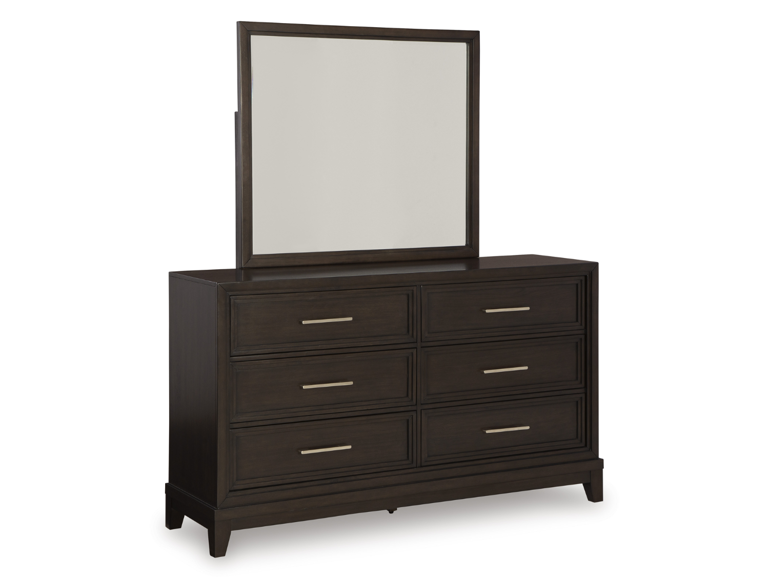 - -6 PC Includes upholstered Queen Bed(HB,FB,Rails),Dresser,Mirror and One Nightstand