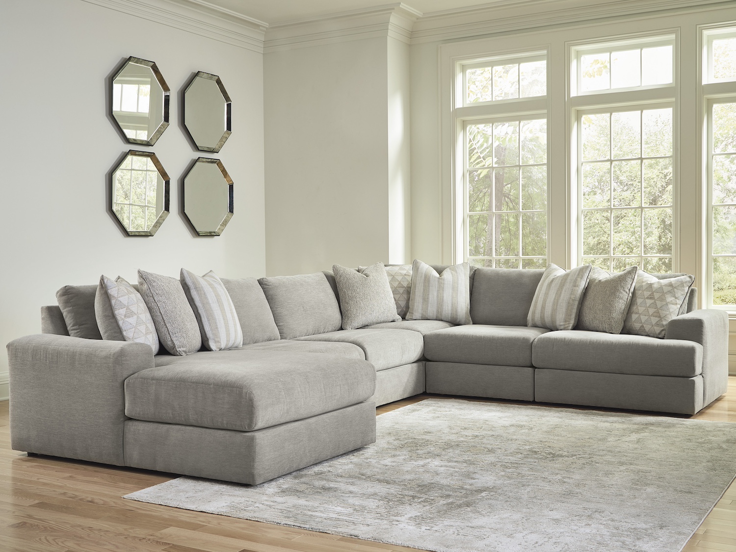 - - Includes 6 modular pieces: left-arm facing corner chaise, 3 armless chairs, wedge and right-arm facing corner chair
