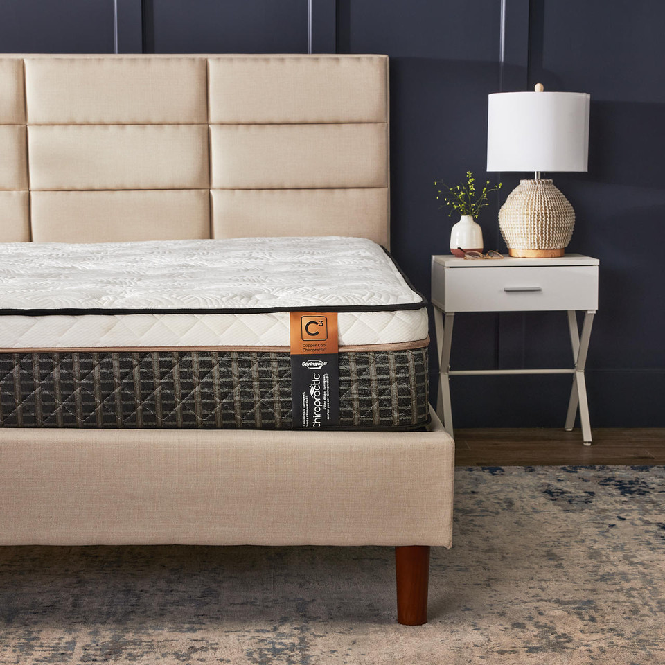 - Springwall Chiropractic Collection Harbour mattress, designed to provide correct postural alignment for a healthy night’s sleep. Zoned pocketed coils are reinforced through the center lumbar region to provide enhanced support and durability, while additional coils reduce motion transfer. Inside, a layer of high-density Bio Foam infused with copper gel relieves pressure while helping to keep you cool—as does the quilted top’s layer of cooling gel and cold-to-the-touch copper fabric upholstery. It’s all combined into an easy-to-maneuver boxed mattress that’s convenient to set up in smaller spaces, while providing top-notch comfort night after night.