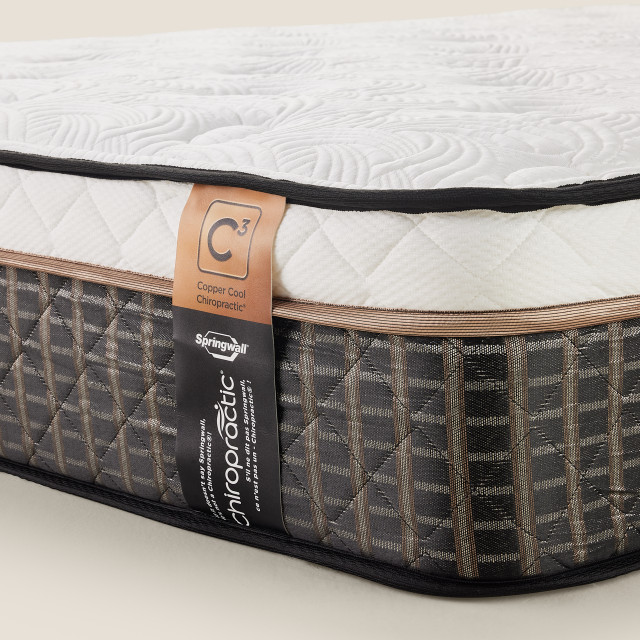 - Opt for the ultimate fusion of comfort and convenience with the Distinction Series Springwall Chiropractic Collection Harbour mattress, designed to provide correct postural alignment for a healthy night’s sleep. Zoned pocketed coils are reinforced through the center lumbar region to provide enhanced support and durability, while additional coils reduce motion transfer. Inside, a layer of high-density Bio Foam infused with copper gel relieves pressure while helping to keep you cool—as does the quilted top’s layer of cooling gel and cold-to-the-touch copper fabric upholstery. It’s all combined into an easy-to-maneuver boxed mattress that’s convenient to set up in smaller spaces, while providing top-notch comfort night after night.