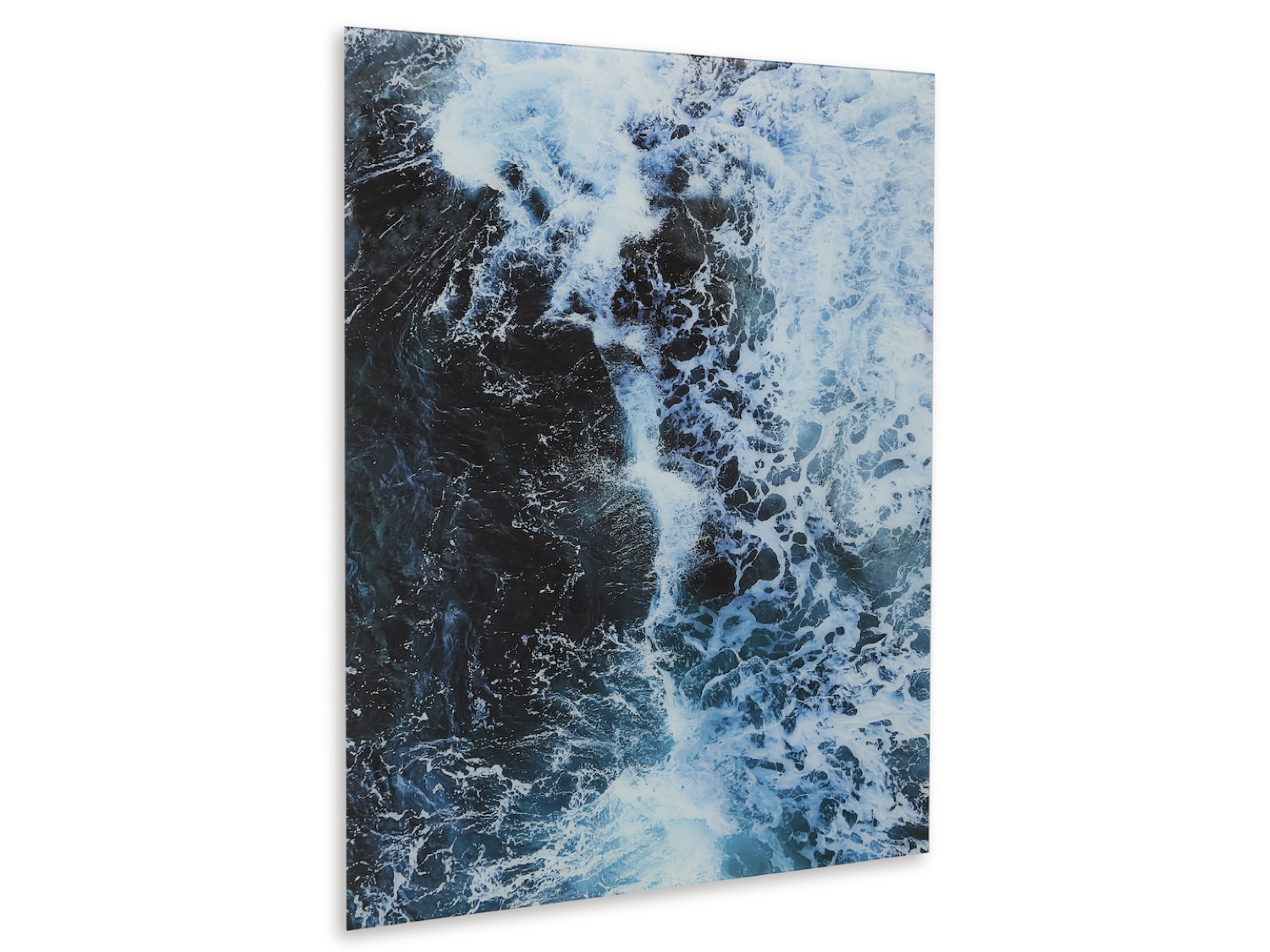 - Like waves kissing the shoreline as they crash, this print on glass reminds you of the tide pulling out to sea. Swirling turquoise hues form a mesmerizing image of the ocean with foamy white caps. Perfect for ocean lovers or coastal cottages, this maritime art is sure to make a statement.