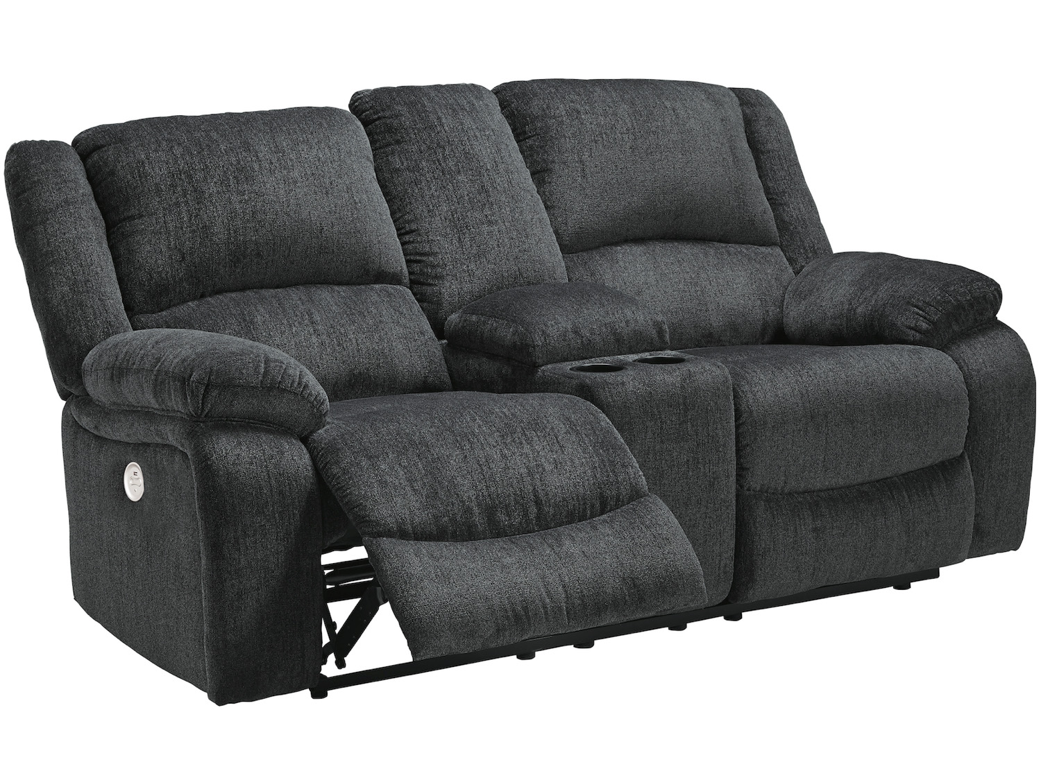 - Built for luxury, this power reclining sofa lets you kick back in reliable style. The thick, softly textured chenille upholstery provides a comfy surface on which to lounge. With bustle back construction and thickly cushioned armrests, this piece gives you the dependable support you need to unwind while the handy USB port provides the power to keep your devices going.