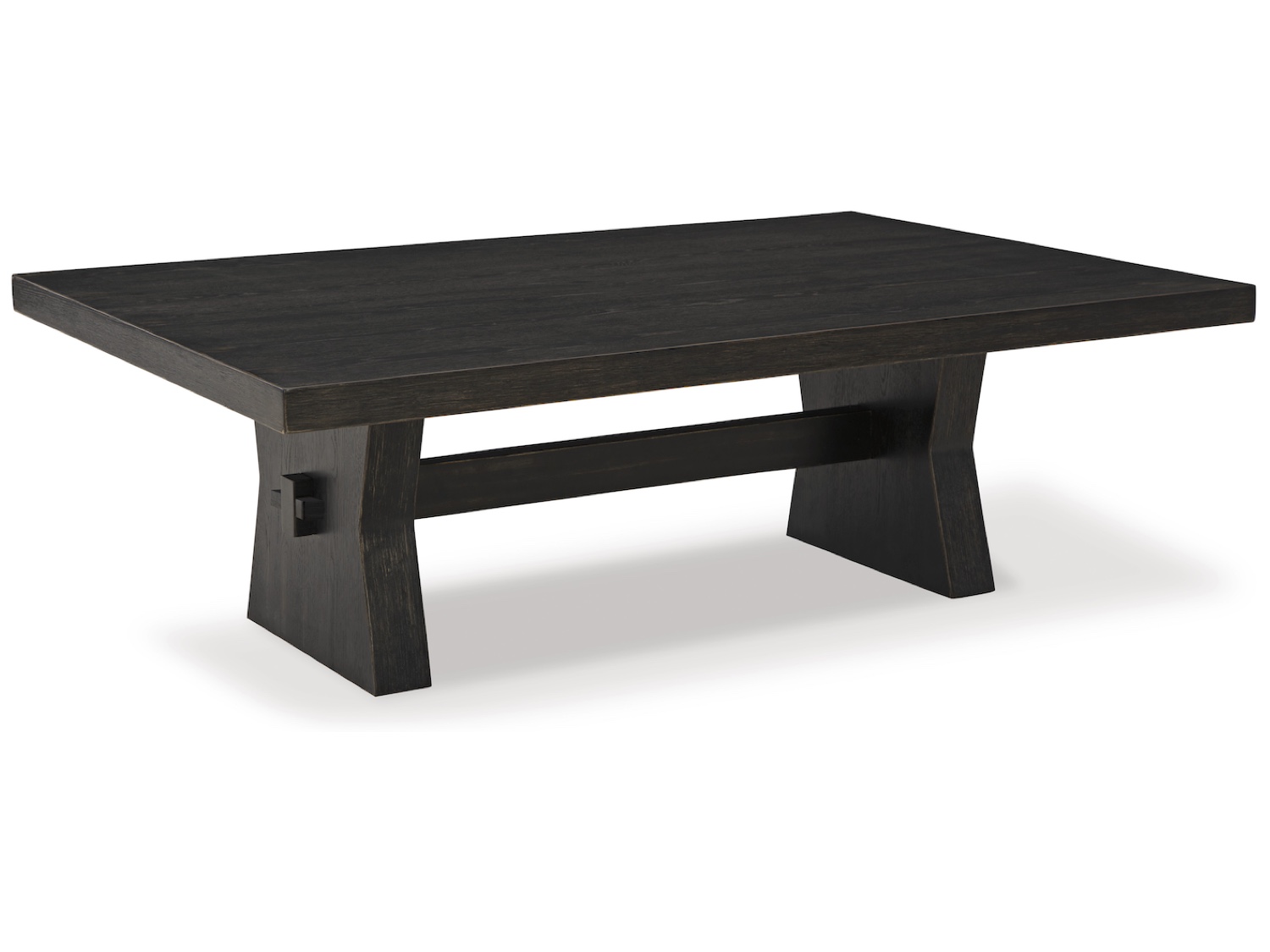 - This coffee table brings a rustic vibe to urban contemporary design. It’s a modern approach to natural beauty, with an aged black finish defining a thick top. And the stunning simplicity of its color palette allows you to seamlessly coordinate this table with your existing decor.