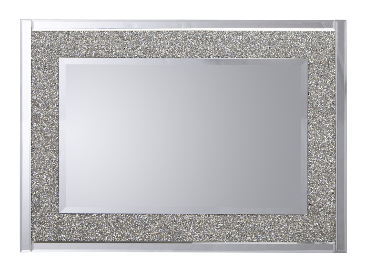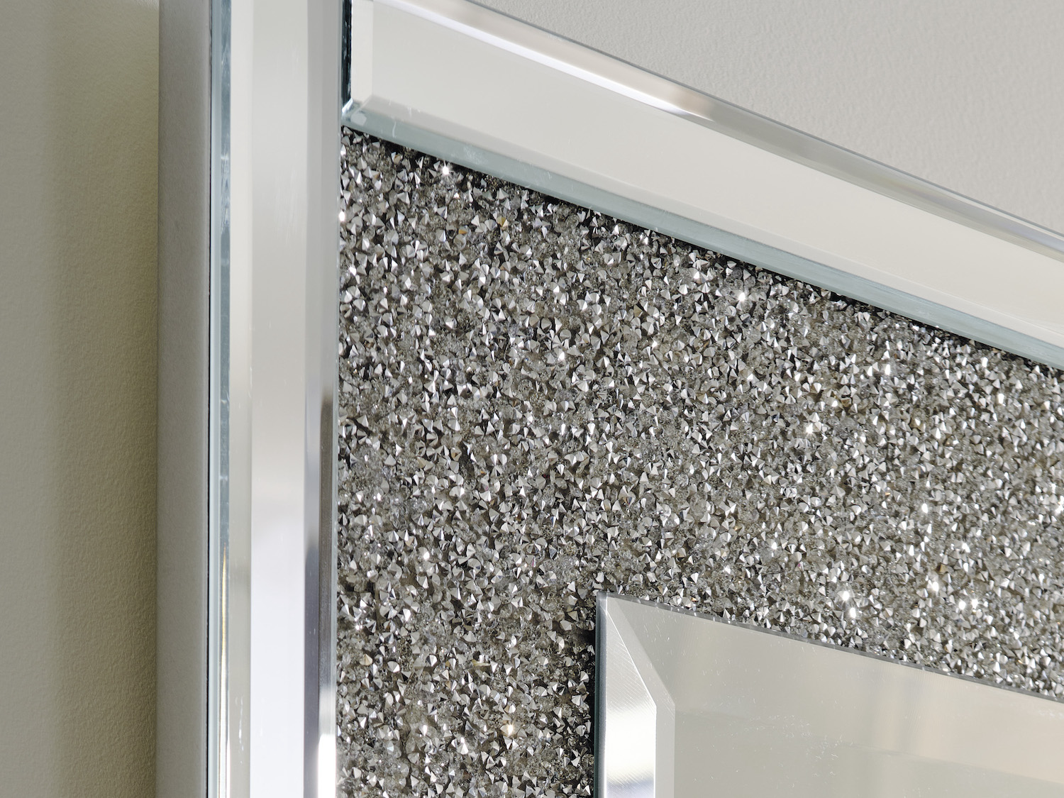 - Subtle glitz and glam are in reach with this accent mirror. Beautifully crafted with a cut-glass outer frame with delicate crystal beading on the inner frame. The beveled center mirror floats inside the frame adding a soft sparkle to any room.
