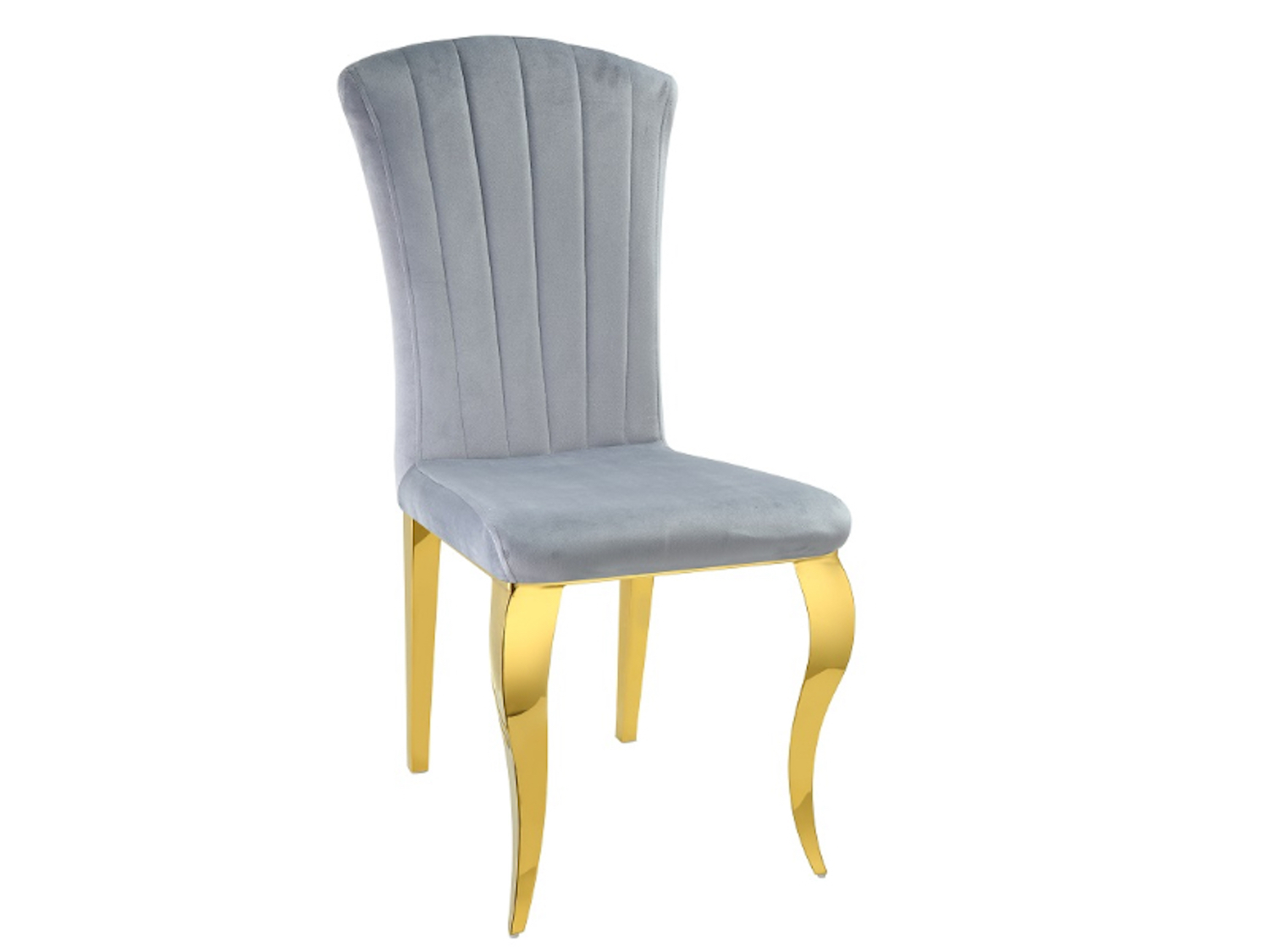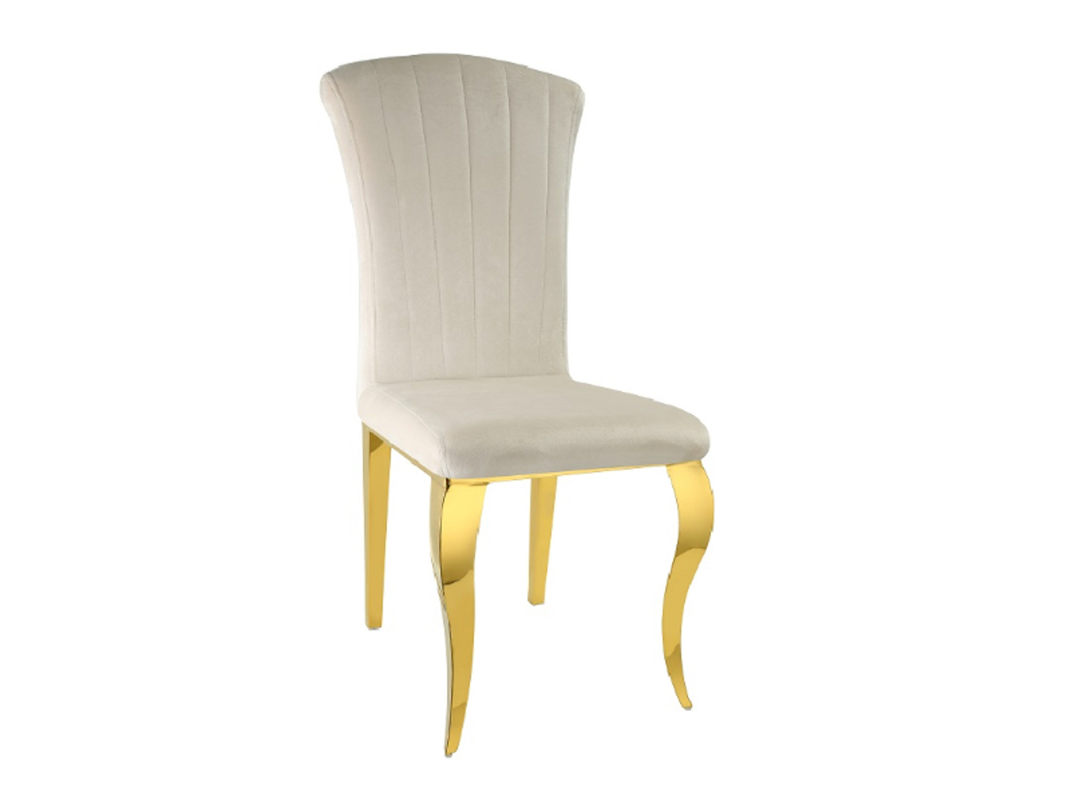 - Nothing beats the beauty of this glammed-up high quality velvet upholstered dining chair with stainless steel gold legs. The luxurious vibes of this dining chair surpasses all the decor elements and becomes the highlighting feature in the dining area. A beautiful looking stylish chair that can also be used as an accent chair in any space. It is also available in black, beige and grey colour depending on your requirement and interiors.