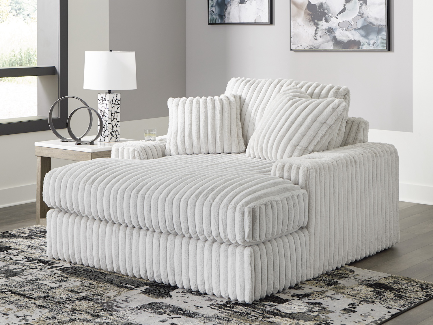 - Don’t want to sacrifice standout style for majorly cozy seating? The Stupendous oversized chaise pairs bold character with sink-in comfort. Its retro-cool jumbo cord over feather-blend cushions creates a luxuriously soft lounging experience. Cup holders and USB charging help to keep essentials close. With this chaise, you can balance everyday relaxation and your unique eye for design. Platform foundation system resists sagging 3x better than spring system after 20,000 testing cycles by providing more even support