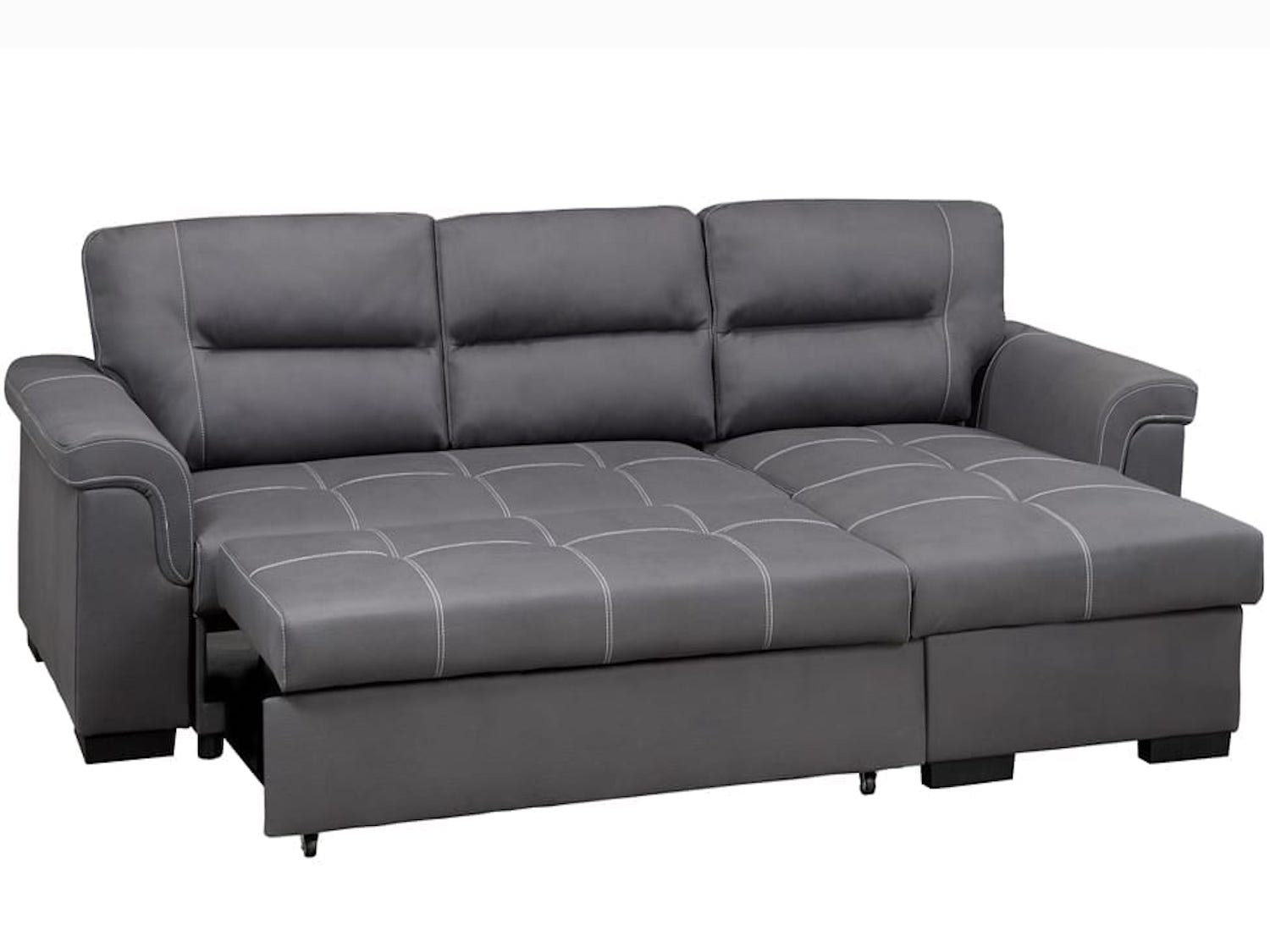- - Draped in beautiful grey air suede fabric, and complimented with accent stitching.